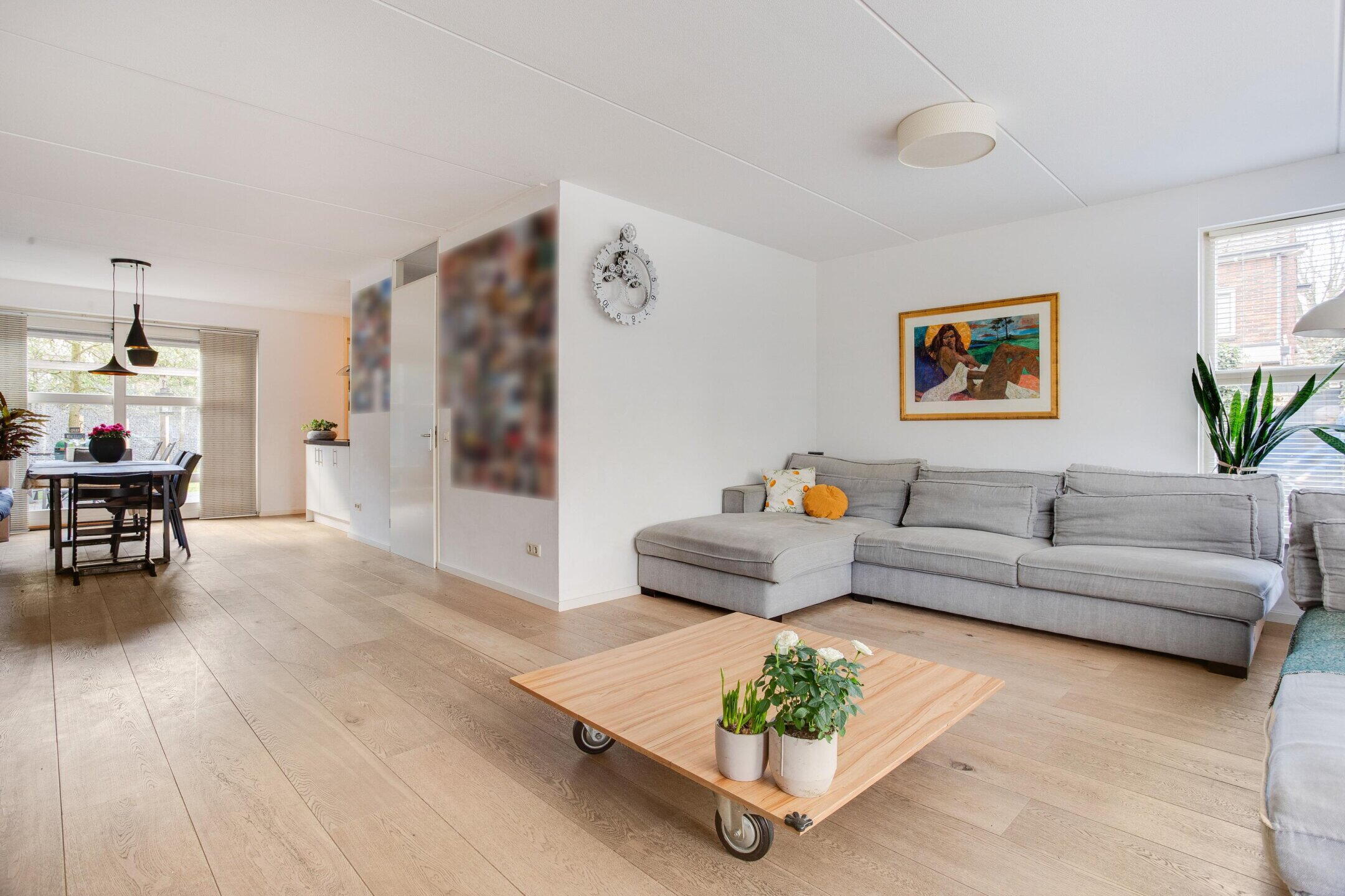 De woonkamer biedt volop ruimte voor een grote eettafel, ideaal voor lange diners, huiswerk momenten of gezellige avonden met familie en vrienden. De keuken ligt letterlijk om de hoek, waardoor het woondeel ruim en rustig blijft, terwijl de verbinding tussen koken en samen zijn intact is.