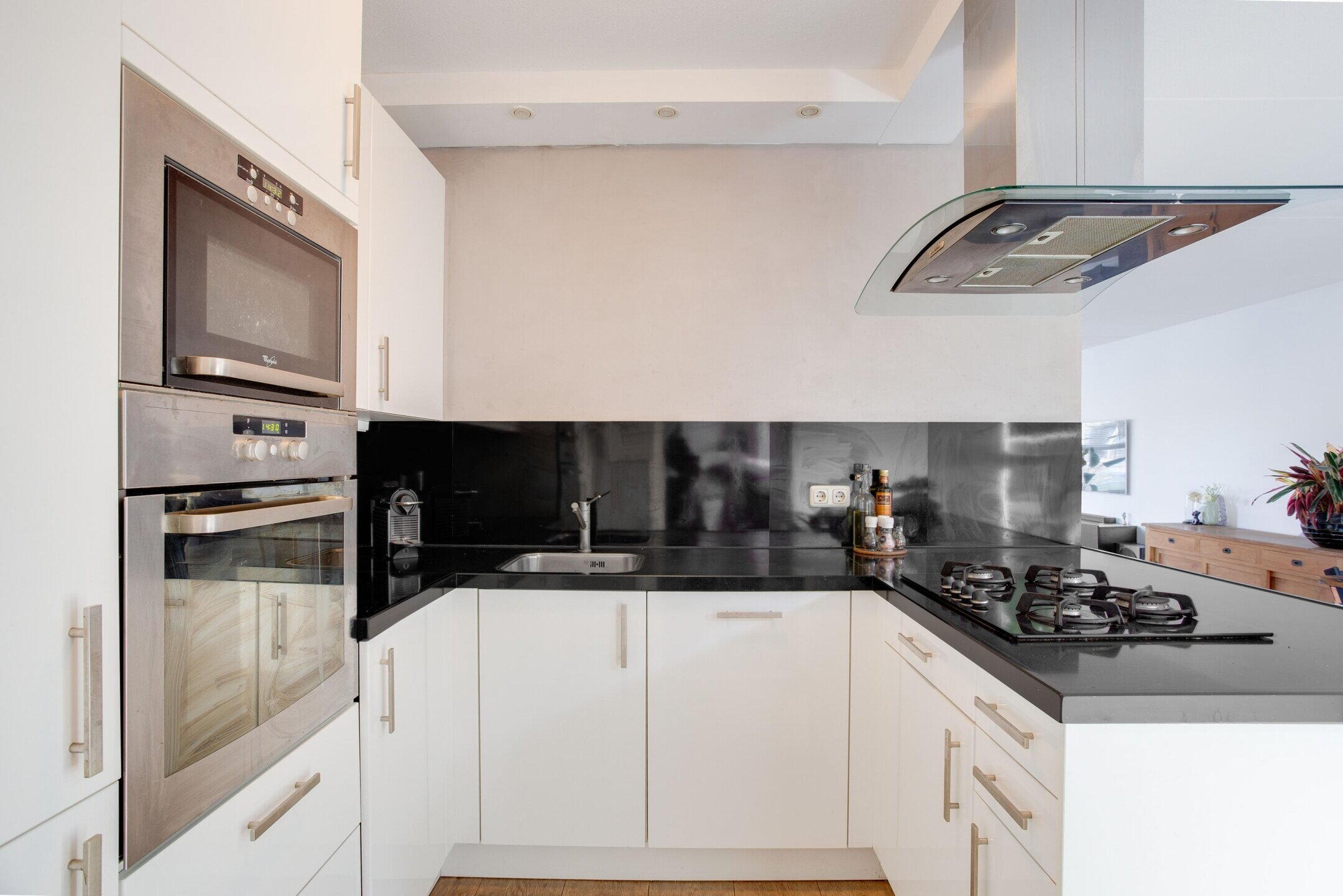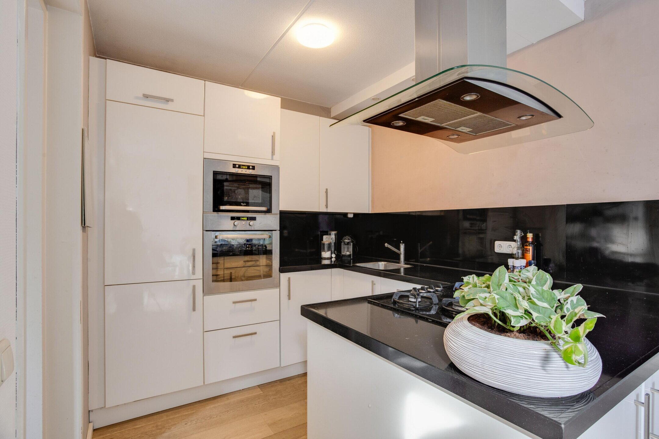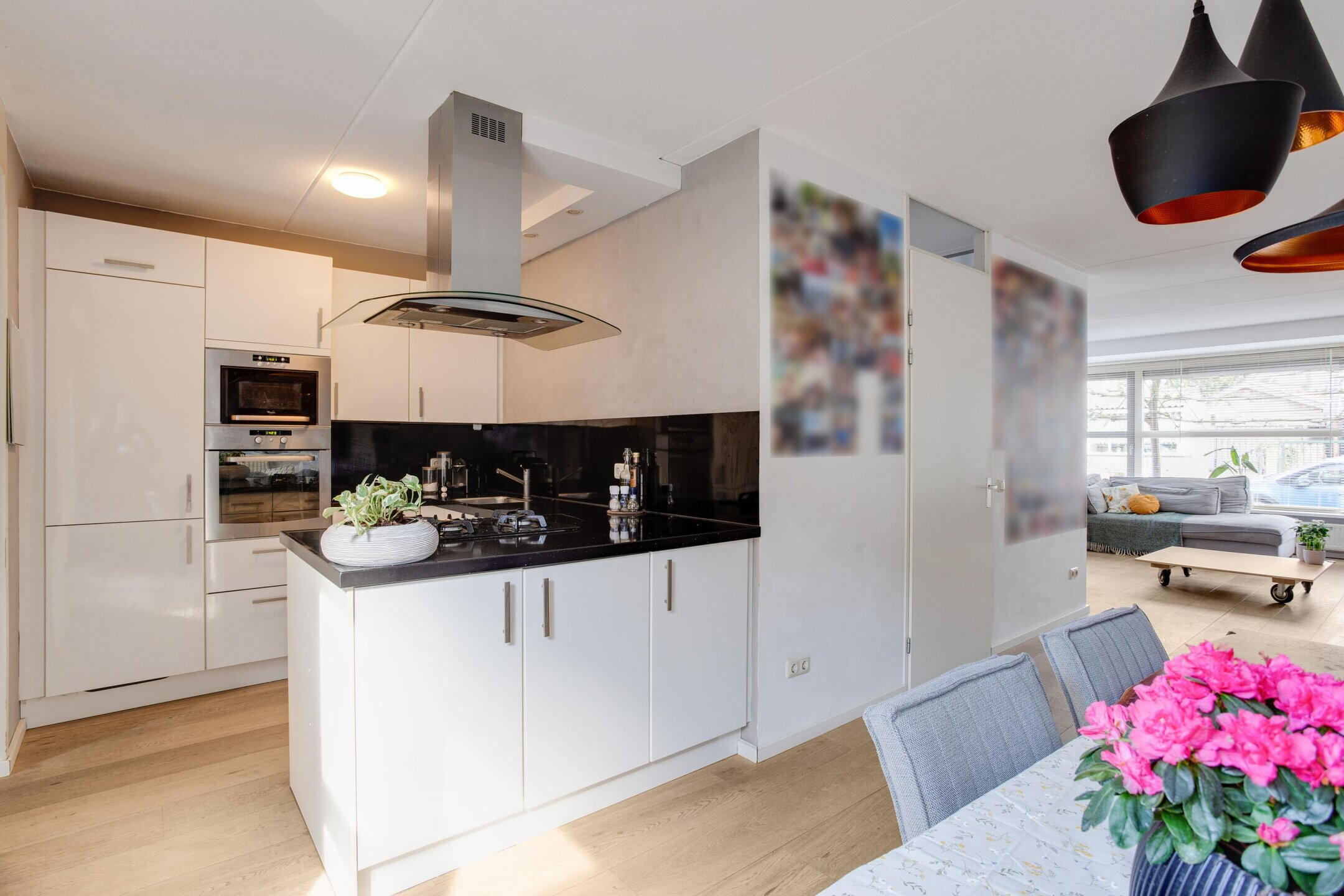 De keuken is uitgevoerd in een praktische U?opstelling, waardoor alles binnen handbereik is en er efficiënt gewerkt kan worden. Een fijne, overzichtelijke ruimte waar doordeweeks het gezin samenkomt en in het weekend uitgebreid wordt gekookt. Door de slimme opzet voelt de begane grond als één samenhangend geheel, met duidelijk gedefinieerde plekken voor wonen, eten en koken.