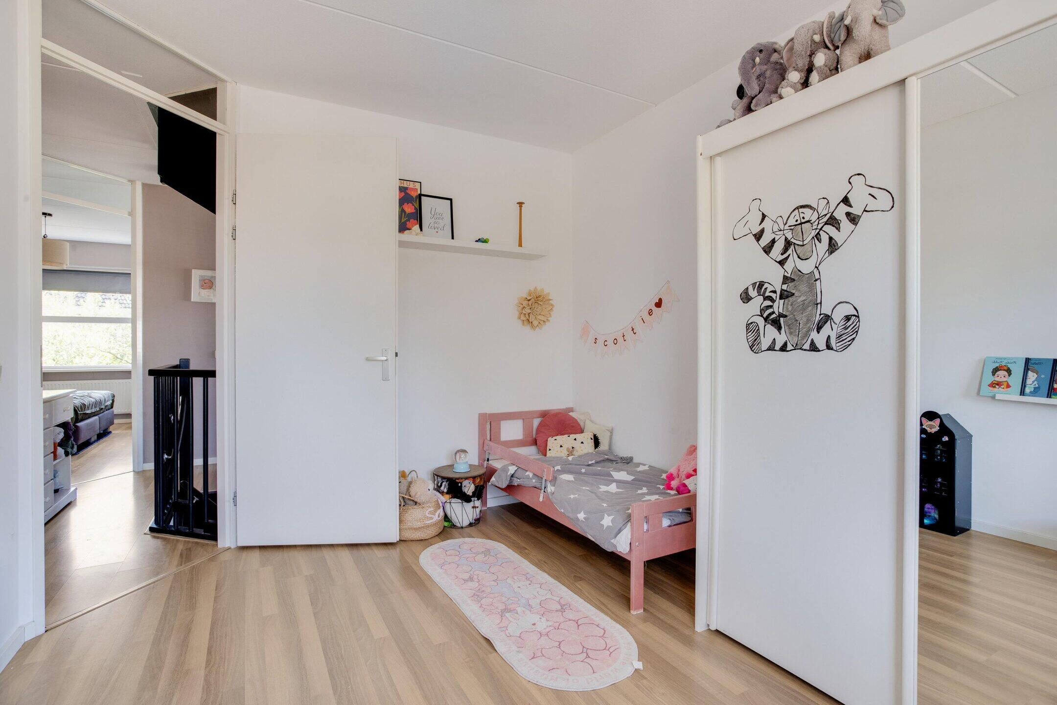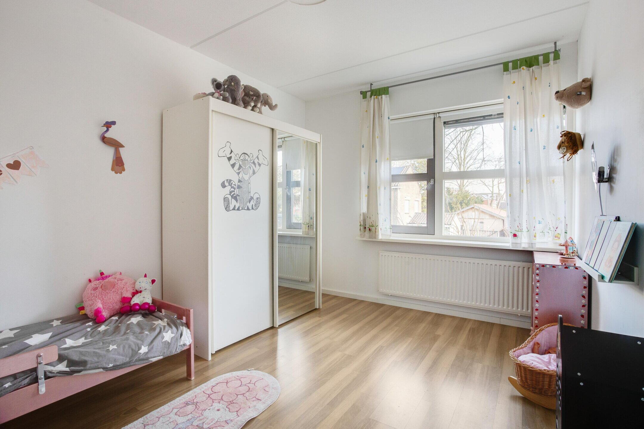 De woning beschikt over maar liefst vijf volwaardige slaapkamers, waarvan drie op de eerste verdieping en twee op de tweede verdieping. Deze verdeling maakt de woning bijzonder geschikt voor gezinnen waarbij ieder kind zijn eigen kamer heeft, met daarnaast volop flexibiliteit voor de toekomst.