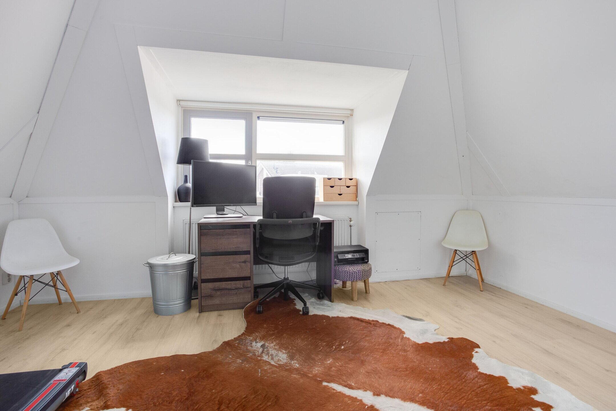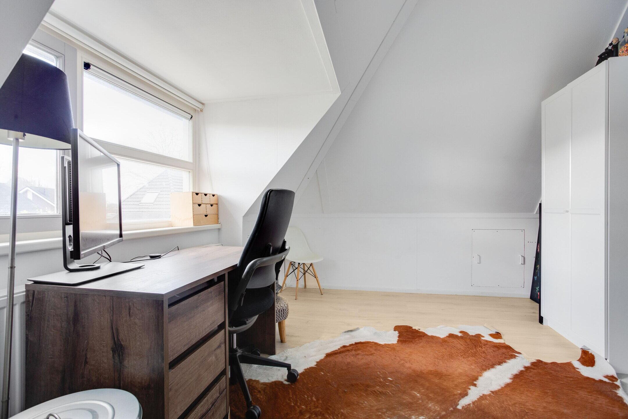 Dankzij het ruime aantal kamers is hybride werken vanuit huis eenvoudig en comfortabel mogelijk. Eén of meerdere kamers laten zich uitstekend inrichten als thuiswerkplek, studeerkamer of hobbyruimte, waarbij wonen en werken letterlijk van elkaar gescheiden blijven. Ideaal voor ZZP’ers, ondernemers en professionals die regelmatig vanuit huis werken en daarbij rust en focus waarderen. De verdiepingen voelen aangenaam ruim aan, mede dankzij de royale plafondhoogte van circa 2,64 meter en de vele ramen, die zorgen voor een prettige lichtinval en een open, frisse sfeer in alle vertrekken.