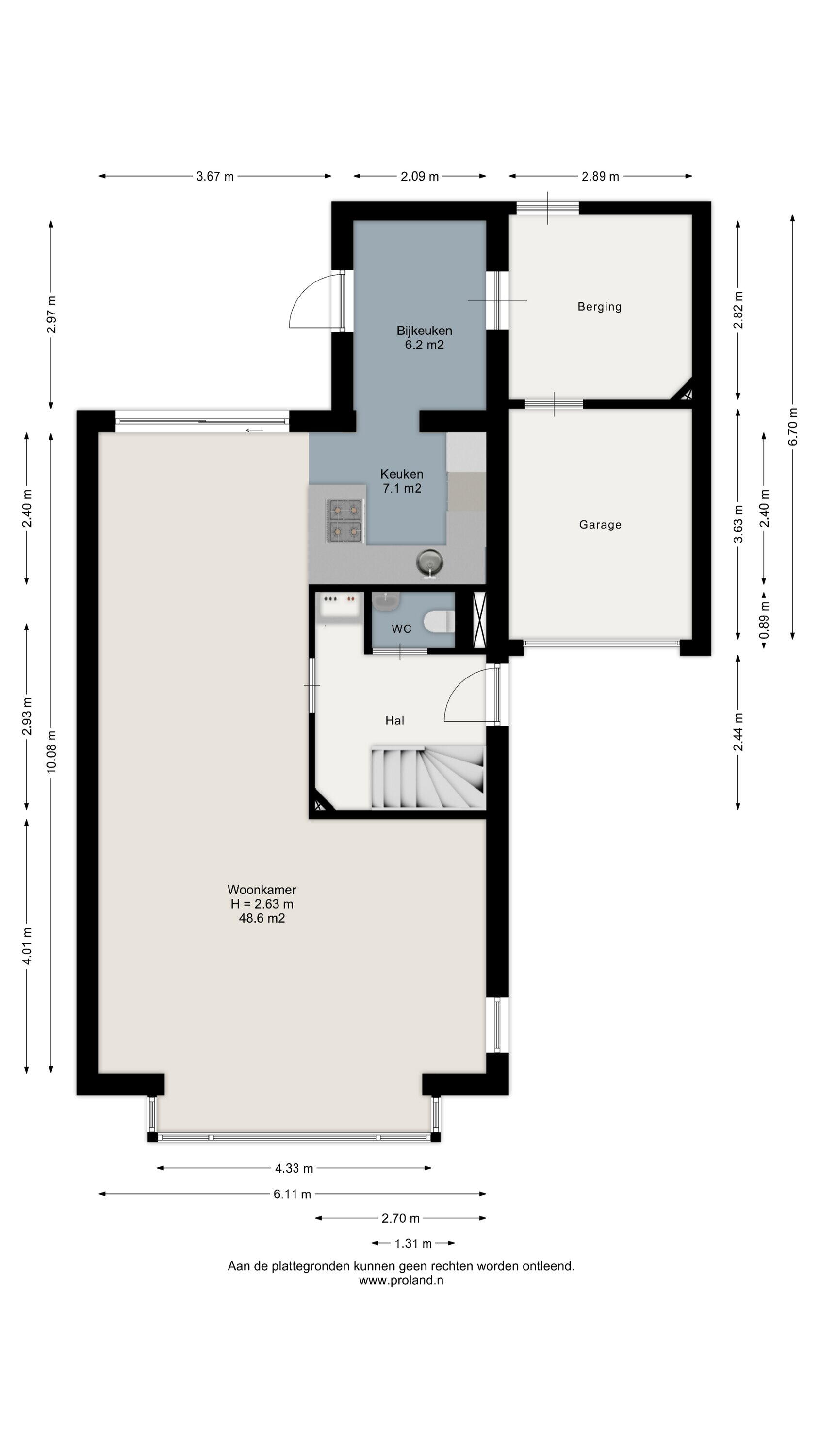 - 117 m² (10.8 meter diep en 10.79 meter breed)
